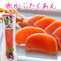 赤かぶの色素と旨味が染み込んだ、昔ながらの「ひね漬け」たくあんです。