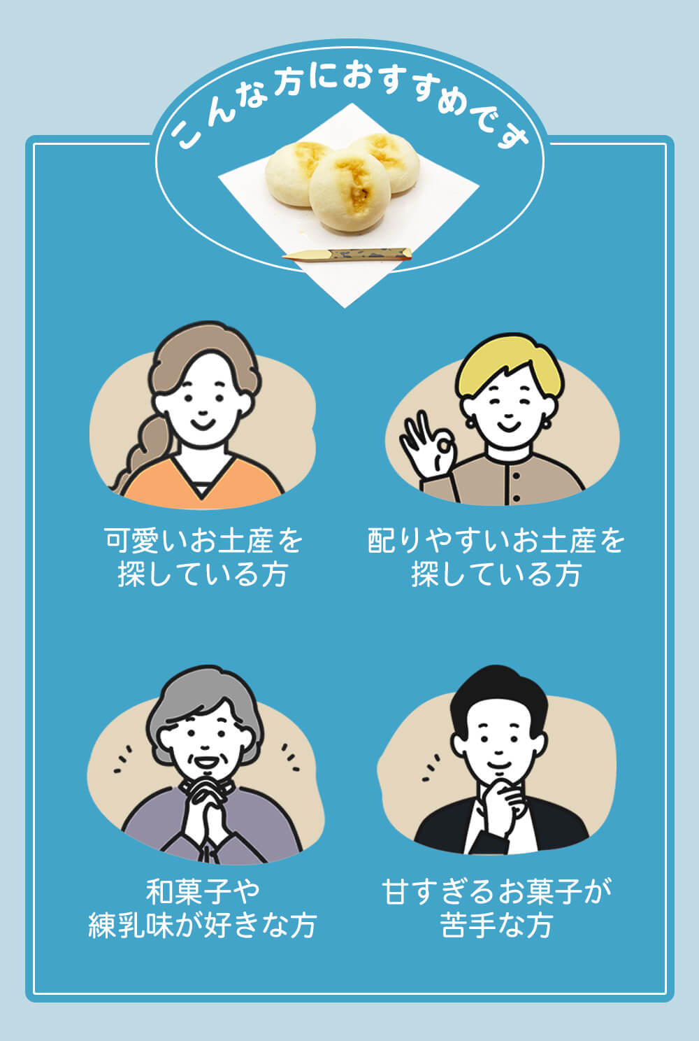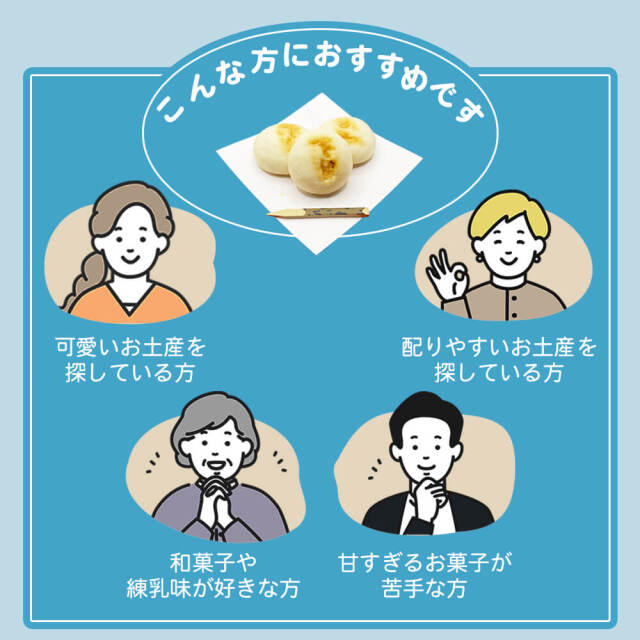 練乳餡がお好きな方や、食べやすいサイズの和菓子をお探しの方におすすめです。