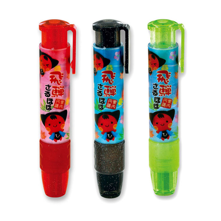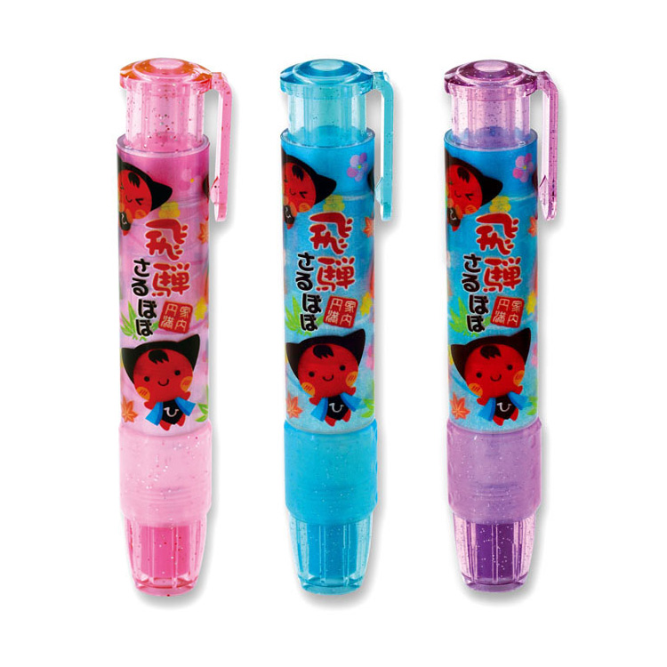 ラメ入りのスケルトンボディに、カラフルな色と可愛く描かれたさるぼぼ消しゴムで、お勉強が楽しくなる事間違いなし!